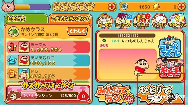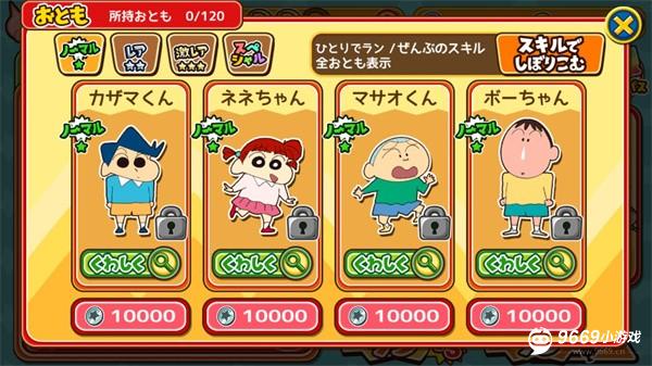 5、最后,当然了除了小新之外,动画片里的其他小伙伴们也会逐一出场。春日幼稚园的风间君、妮妮等朋友如果跟着小新一起跑的话,会产生意想不到的好效果哦,比如进一步提高分数等等。不过想要跟换其他小伙伴也是需要金币的哦!