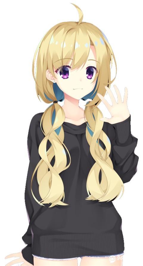 黑发红瞳,扎马尾。披粉白相间的外套。