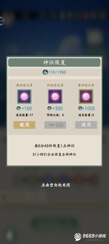 神识界面购买:每天8点刷新5枚中体力丹(300点/颗)-100代金每颗
