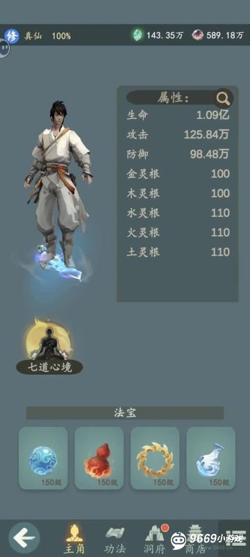 (2)灵石:给功法和法宝升级使用的!获取途径:每日挂机、消耗神识探索完成任务(大头产出)、命运峰挑战。这个东西还是有点重要的(优先升级法宝然后在升级功法)