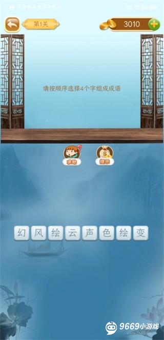 玩家可以根据给出的部分成语和提示填写完整的成语,或者根据上一个成语的最后一个字接下一个成语的第一个字。