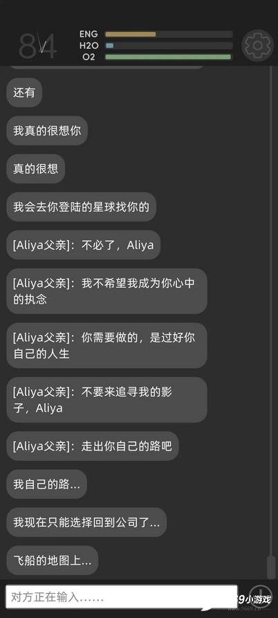 游戏以实时聊天的形式展开,玩家通过“COSMOS”终端与Aliya交流。她的回复时间与现实时间同步,有时不会即时回应,当她回复时系统会自动提醒。玩家的每一次回答都至关重要,会影响Aliya的决定,进而改变剧情走向。比如在面对飞船能源即将耗尽的危机时,玩家选择建议Aliya采取节约能源的方案,还是冒险尝试修复破损的能源核心,这两种不同回答将引导故事走向不同分支。