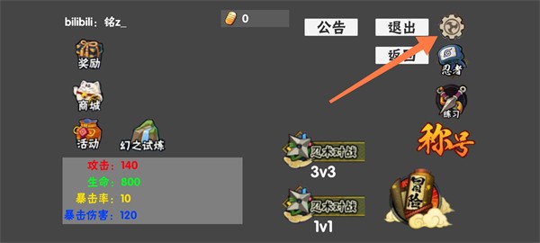 1、打开概念纷争游戏,点击右上角的齿轮
